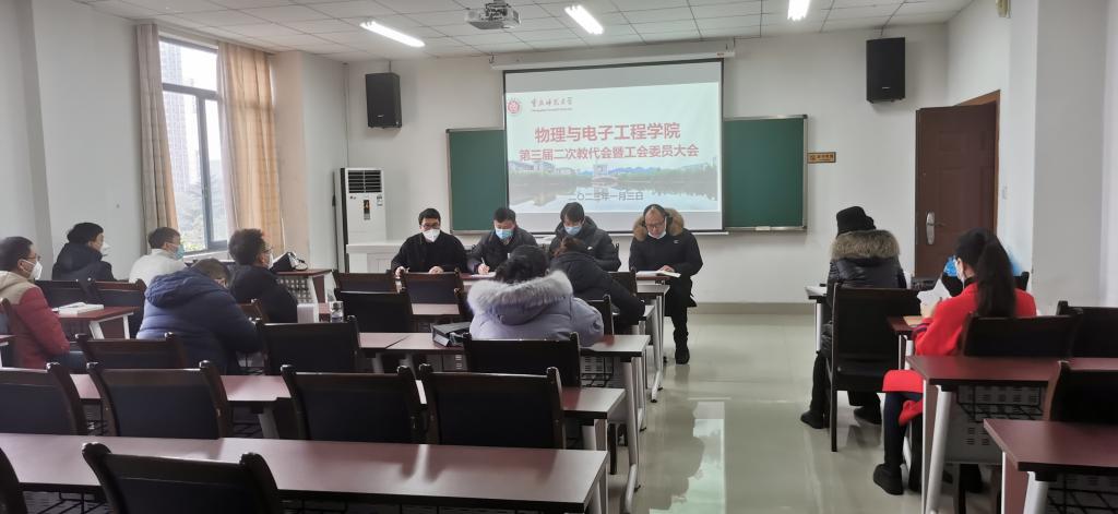 2023年1月3日,新莆京游戏大厅官方入口第三届第二次教代会暨工会委员大会在集贤楼531召开。学院党政领导、教代会代表和工会委员参会。会议由学院教代会主任李万俊主持。