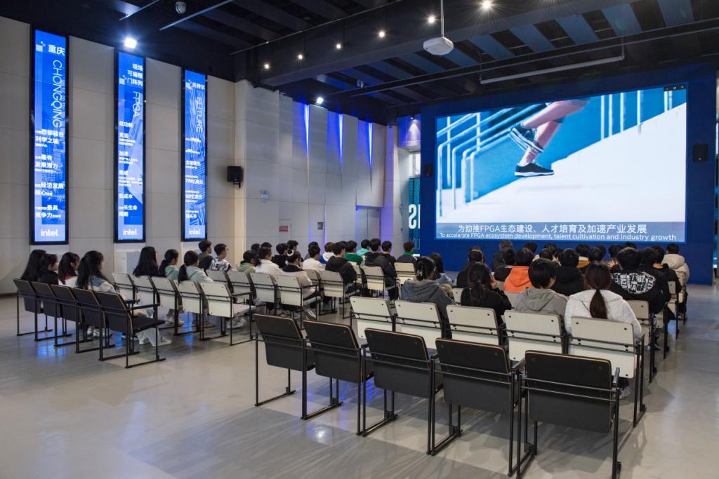在企业负责人的带领下,2022级电子信息专业的同学们观看了FPGA(现场可编程门阵列)的相关发展视频,并从中了解到FPGA全新的芯片布局、新一代HyperFlex寄存器架构、多样的时序优化方法、英特尔10纳米SuperFin工艺、系统级3D芯片、更灵活的DSP和布线微架构。