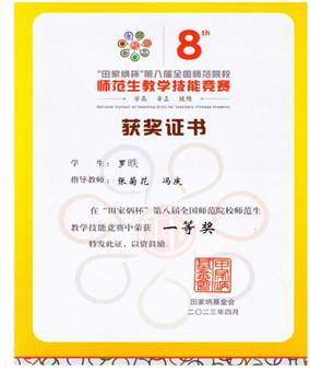 4月14日至4月16日,第八届“田家炳”杯全国师范院校师范生教学技能竞赛决赛在浙江师范大学金华校区举行,来自全国107所院校的优秀学子齐聚芙蓉山下,展示风采。物理与电子工程学院2019级学生罗昳代表物电学院参加本次师范生教学技能竞赛决赛。经过激烈角逐,罗昳同学斩获物理组全国第二名,获得一等奖,这是物电学子再次在该比赛中获得全国一等奖。