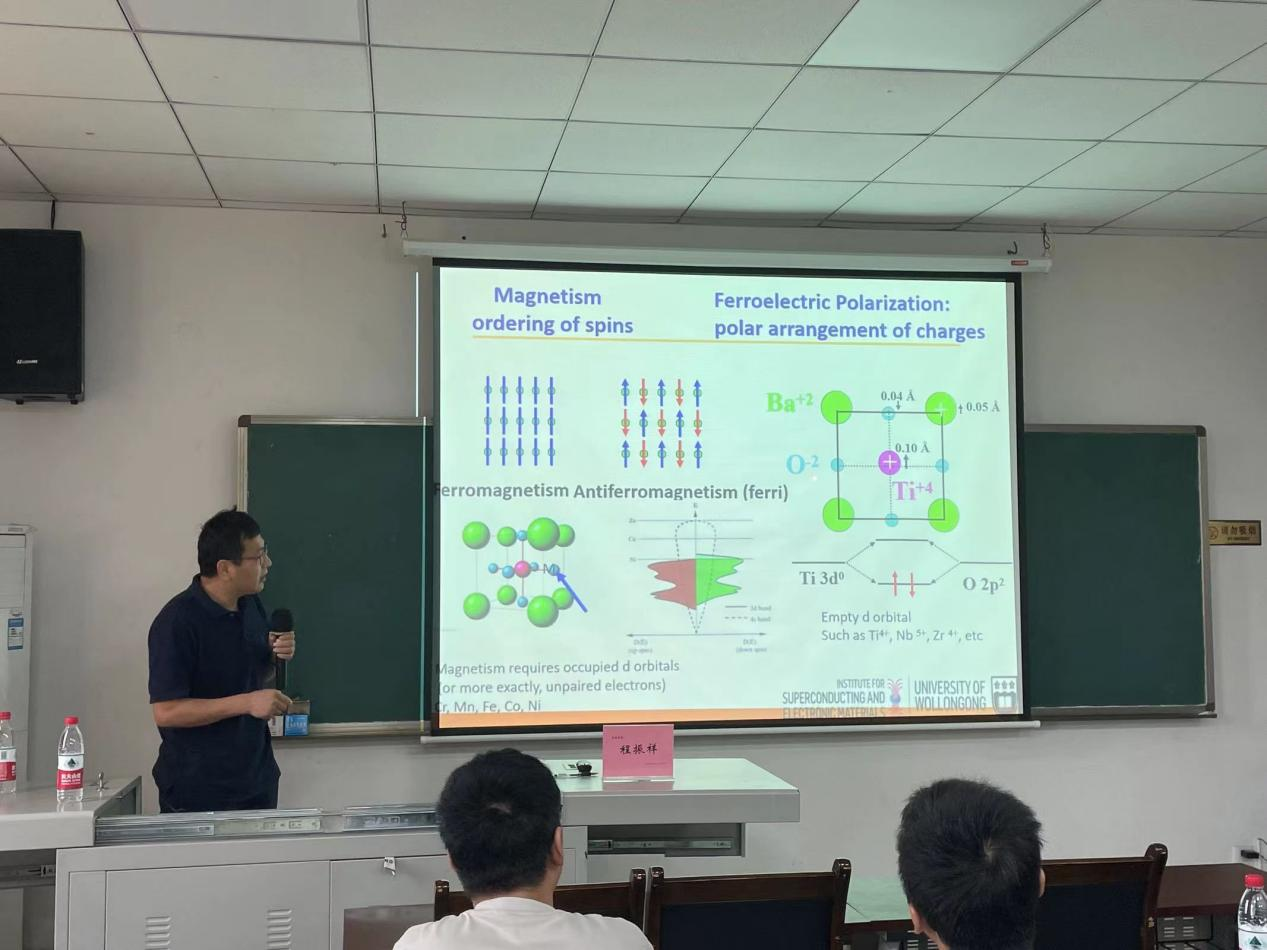 2023年5月18日上午,澳大利亚的University of Wollongong程振祥教授应邀到物理与电子工程学院作学术交流,并作题为“多铁材料及其应用”的学术报告。物理与电子工程学院部分青年教师、研究生及本科生参会,副院长余鹏教授(主持工作)主持报告。