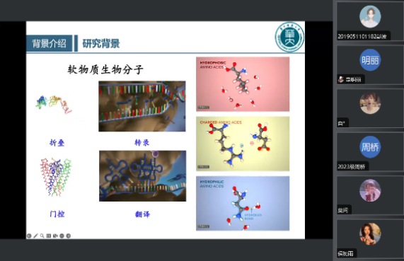 赵蕴杰教授在报告中对凝聚态软物质物理和生物物理学领域中的RNA-蛋白质复合物结构预测方法等研究工作进行了全面系统的介绍。重点讲述了如何利用人工智能方法解决RNA分子结构柔性等问题,强调了RNA复合物结构预测领域的前沿进展与应用。报告结束后,与会师生就报告中的诸多物理模型、预测方法等进行了热烈讨论,赵教授对提出的问题耐心解答,并分享自己的科研工作心得,报告会现场氛围热烈。本次学术报告拓展了与会师生的学术视野,增强了学院与国内其他高校的学术交流,对学院学科建设和人才培养具有积极作用。