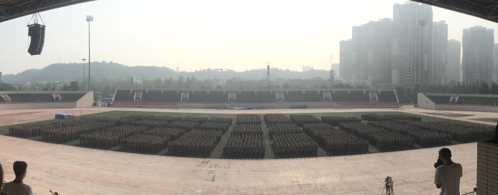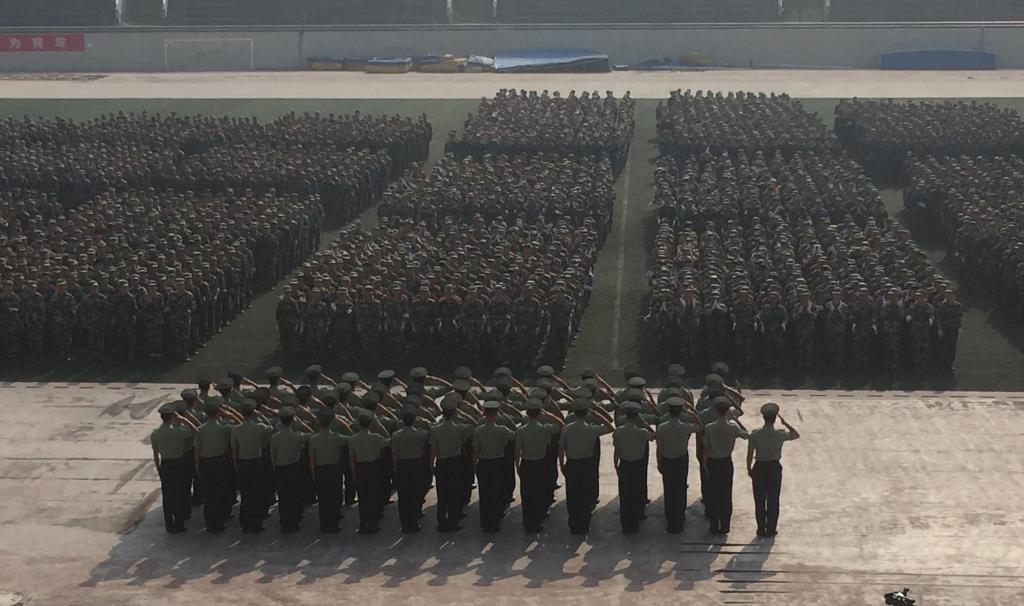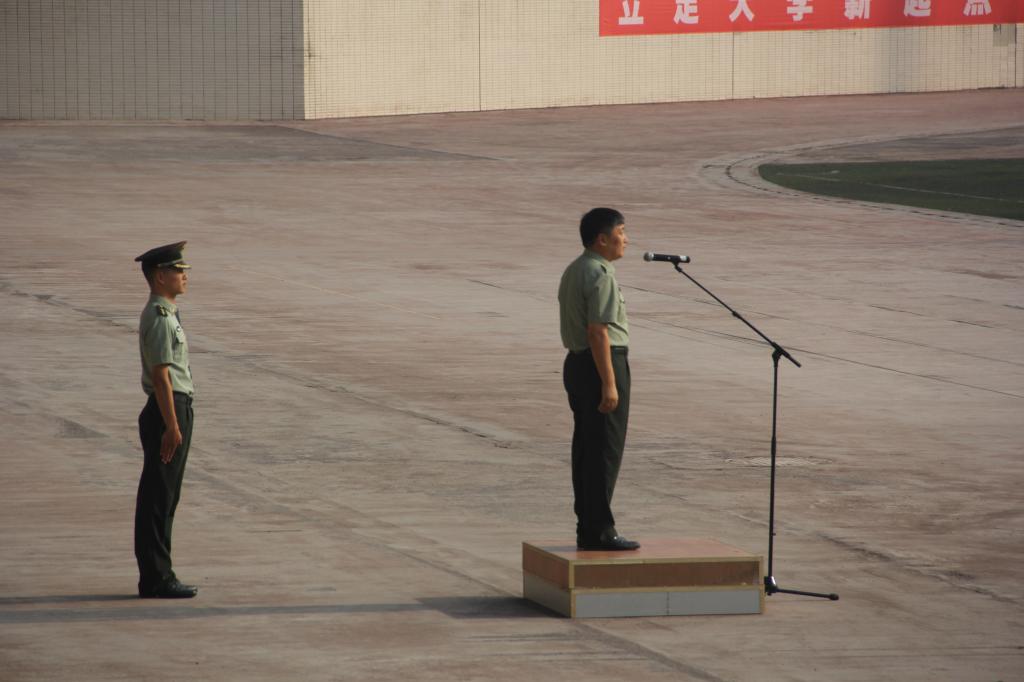 在首先进行的军训成果展上,周泽扬校长对军训的教官和新生进行慰问和鼓励。接着,各连队用嘹亮整齐的口号、英武神勇的军姿、矫健有力的步伐,依次走过主席台接受检阅。物电学院的方队更将“青春如火,超越自我”的学院精神展示在全校师生面前,也让人们看到了大学生顽强拼搏、激昂向上、吃苦耐劳的优秀品质。检阅结束,表演方阵带来排面整齐划一的匕首操和据点错落有致的队列操,同学们都拿出了比之前排练更加认真刻苦的精神来展现,高涨的热情和十足的活力将整个活动推向了高潮。军训成果展结束,一团20连系物电学院女生连队等连队获得了“优秀连队”的称号!