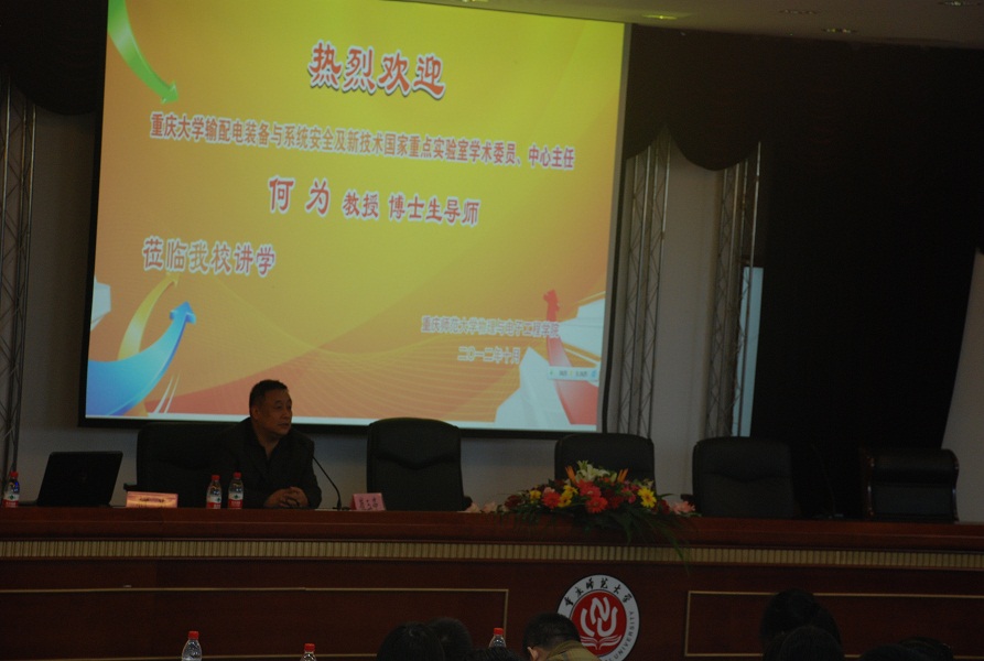 2012年10月11日星期四下午14:30,澳门新莆京游戏大厅版本邀请了重庆大学输配电装备与系统安全及新技术国家重点实验室学术委员中心何为教授在凯撒报告厅举办了一场关于“电工新技术发展及其应用”的专题讲座,参加这次讲座的嘉宾有物电学院党总支副书记冉久飞、团总支副书记李青松以及2012级电子专业的新生。